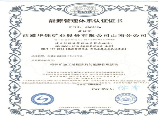 八、根据国家相关规定,按照减量化、再利用、资源化的原则,建成西藏自治区矿山企业第一家开展能源管理标准贯标和通过认证的矿山。
