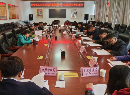 会议最后,拉巴平措做了重要讲话,他首先向与会人员说明了此次人大执法检查组的来意、主要目的和下一步工作,他指出,《中华人民共和国固体废物污染环境防治法》的执法检查,是由全国人大发起的,规格很高、力度很大,政治局常委全国人大委员长栗战书亲自担任领导组组长。检查覆盖全国31个省,其中云南、江西等八个省份是全国人大直接检查,其余的23个省份是委托当地人大部门检查,西藏也是属于委托的。接到全国人大委托的任务以后,自治区高度重视,成立了执法检查组,区党委副书记、人大常委主任洛桑江村同志担任领导小组组长。检查的主要内容有:第一是对法律的学习宣传、配套法规规划的制定情况;第二是城乡生活垃圾分类制度落实情况;第三是电子商务、快递、外卖等行业高端物回收率情况;第四医药费、医药垃圾处置情况;第五执法监管机关的法律落实情况;第六是法律实施过程中存在的问题及建议。